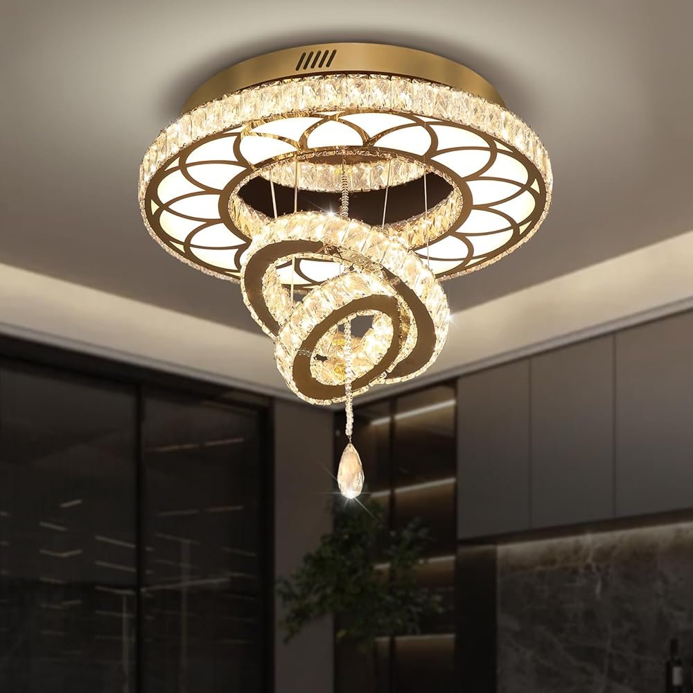 Flashing God Dia 20″ Crystal Chandelier Crystal Gold Ceiling Light Fixtures LED Flush Mount Ceiling Light for Living Room Bedrooms Dining Room Dimmable 2700k 4500k 6000k