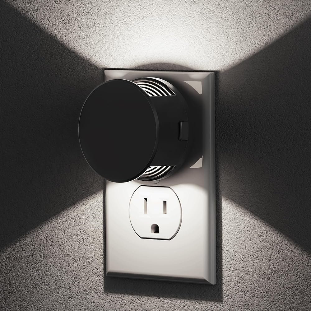 • Unique Design — Featuring a black minimalist frame design that emits light upward and downward, The stylish and sophisticated outlook of small night light does not block the bottom outlet for other devices.